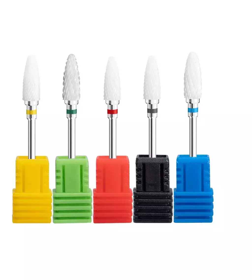 Brocas de CerâmicaAmarela: Ultra FinaVermelha: FinaAzul: MédiaVerde: GrossaPreta : Extra Grossa- Características: Remodelar suas unhas: Linhas da cabeça da broca pode ajudá-lo a aperfeiçoar e remodelar as suas unhas. É feito de cerâmica e Aço inoxidável, resistentes e Esterilizáveis São também menos estáticas, o que significa que a poeira não adere facilmente, oferecendo-lhe um modo mais higiénico de trabalho.Vantagens:Nenhuma obstrução.ErgonômicaExcelente durabilidade e desempenho de corte.Fácil identificação.Não Propaga CalorPodem ser esterilizadas na Autoclave- Precauções:1. Verifique pedaços de unhas antes do uso.2. Sempre usar óculos de proteção.3. Uso profissional e Doméstico5. Mantenha fora do alcance das crianças.6. Desinfetar Brocas após o uso.- Especificações::: Encaixe padrão:: Para Todos os tipos de Motor Elétrico