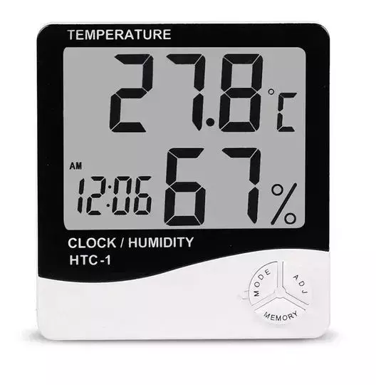 O Termo-higrômetro é digital com registro de máxima e mínima, além de ser termomêtro, relógio e também despertador.
