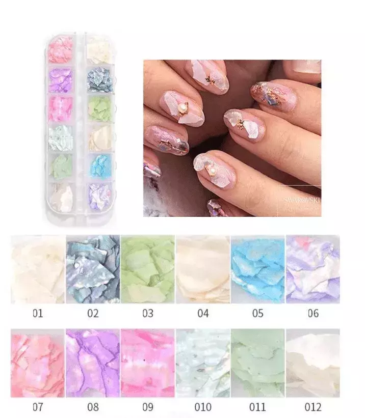 Kit Madrepérola 12 cores para Unha Estojo com Peças Grandes