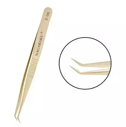 Pinça Nagaraku N-06 possui um acabamento surpreendente e totalmente único, foi projetada pensando em quem necessita de agilidade na montagem de fans, mas que também pode ser utilizada na técnica de fio a fio e fios tecnológicos por possuir uma ponta fina e de alta precisão.